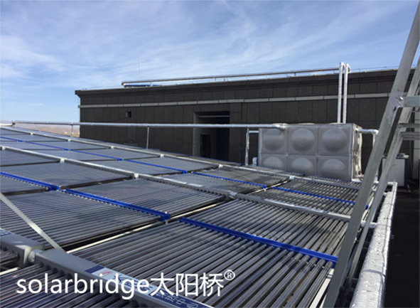 水箱容積18m3,太陽能集熱器TYQ-1800/58-50G共36組,應(yīng)客戶要求配置太陽橋空氣能TYQ-KFXRS-180II/SL二臺,機器使用正常